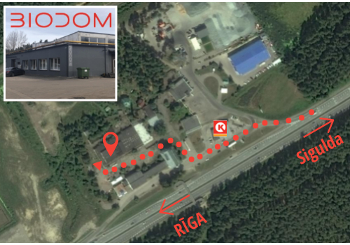 Virzienā no Siguldas uz Rīgu izejiet uz Cirkle K, brauciet caur degvielas uzpildes staciju, augstceltnes priekšā, ieejiet teritorijā (zaļie vārti). Uzreiz pa kreisi līdz pelēkajai ražošanas ēkai galam.